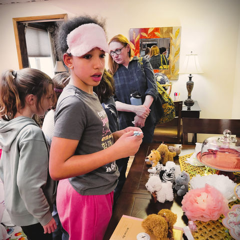 Having just toured Bellevue's Castle, Mont Rest, the Fantastic princess overnight party Begins above a magical chocolate shop called Field of Chocolate dreams, a mystical place overlooking the mighty Mississippi River. The princesses and the queens accompanying them giggled with excitement as they ascended the charming rabbit adorned staircase that led to the chocolate shop's secret royal chambers.